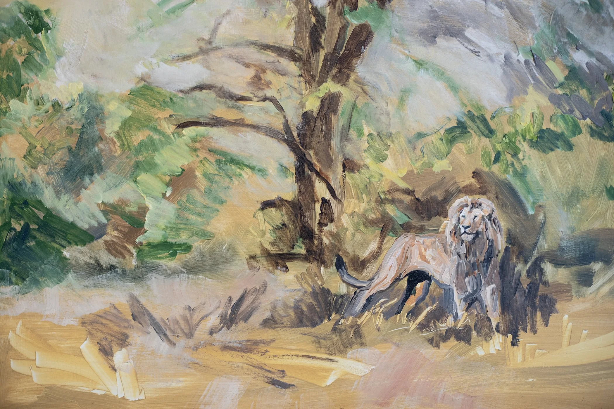 Lion oil on panel with cast plaster and wood frame 37” x 32.5” 2018 Private Collection